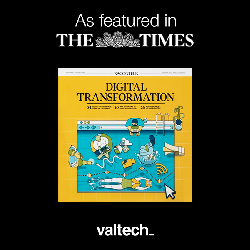 Valtech a participé à la réalisation de deux projets exemplaires commandité par la GDS, le service de transformation digitale du gouvernement britannique : la gestion des véhicules (achat et vente de véhicules pour les professionnels et les particuliers) et le programme d'immatriculation personnalisé (conservation et attribution d'enregistrements personnalisés).