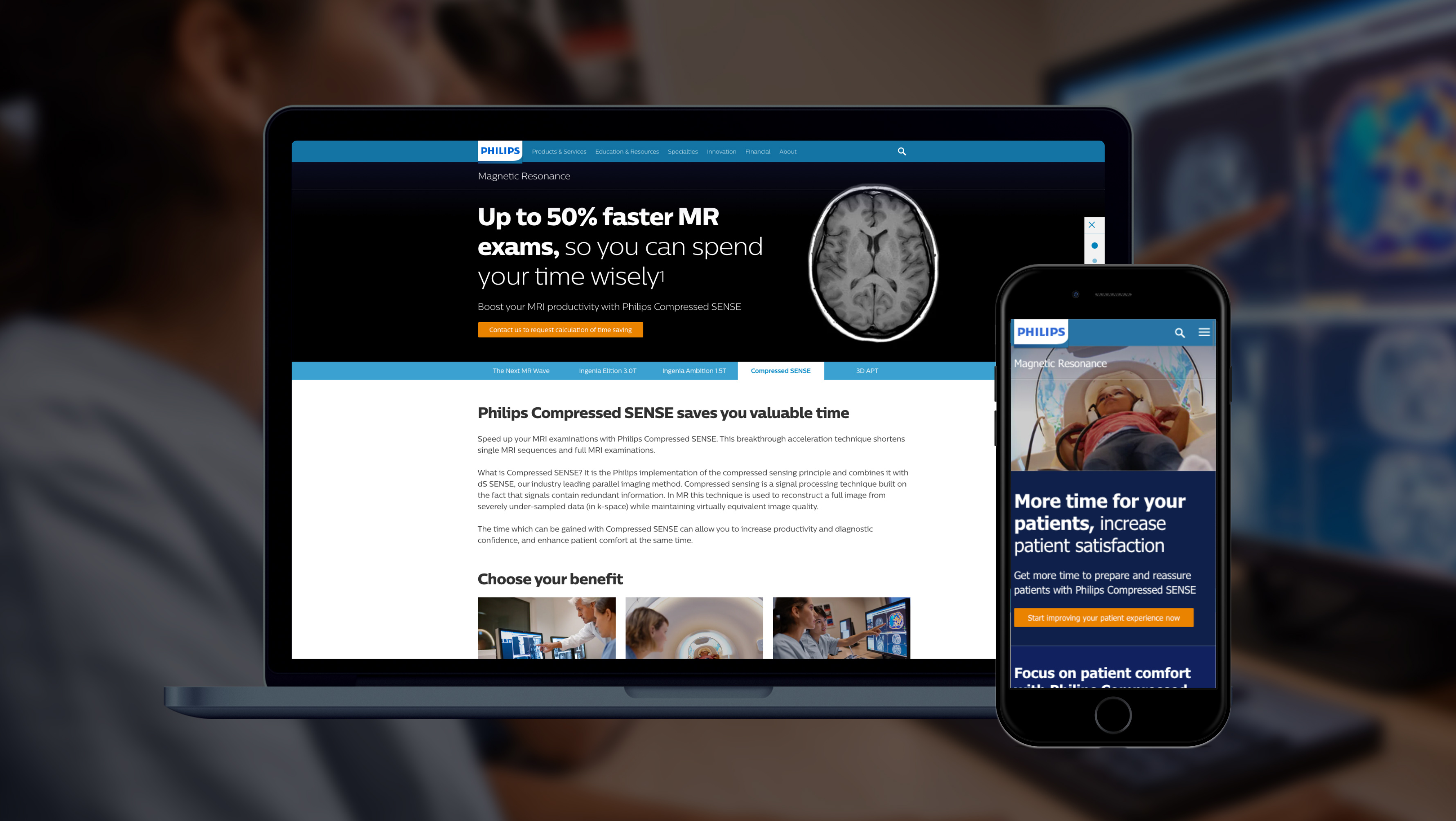 Although Philips doesn’t need any introduction, that’s not the case for its Compressed SENSE healthcare product. Imagine upgrading your computer and finding it works up to 50% faster than before. How much time and frustration would that save you every day? This is exactly what compressed SENSE does, but with MRI scans. Philips’ groundbreaking acceleration technology provides laboratory technicians and radiologists with faster scans. This saves them time, time they can use to perform additional scans at the same image quality, take scans at a higher (and so sharper) “spatial” resolution, or spend with patients. And, not unimportantly, it reduces the workload on radiologists. Something else they can also use.